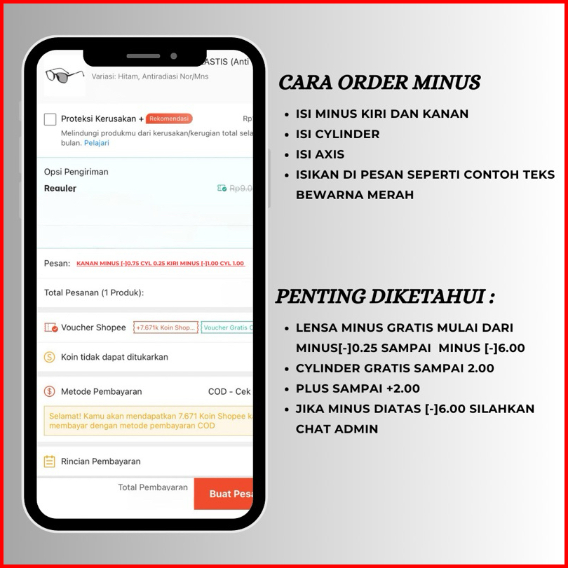 Frame Kacamata Optik Wanita Fashion Stylish Mata Normal Mata Minus - Antiradiasi Minus Plus Cylinder Lensa Photocromic L