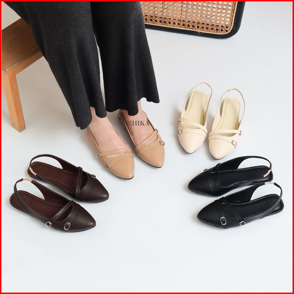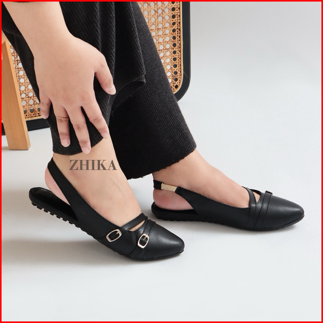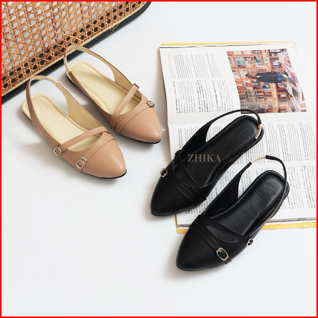 Zhika Sepatu Sandal Mules Wanita Pointed Toe Flat Kasual Formal Stylish Lucia Kerja