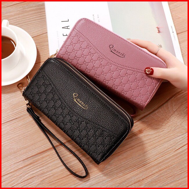 Dompet Wanita Kulit 2 Resleting Premium Eime Murah Panjang Elegan Fashion Batam Pesta Korea