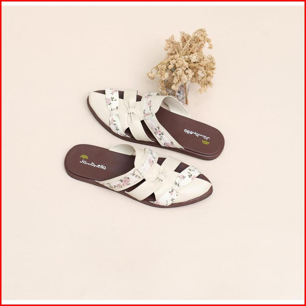 Terbaru Sandal Mules Wanita Jambrella Callysta Cream Sandal Mules Simple Shoes Sendal
