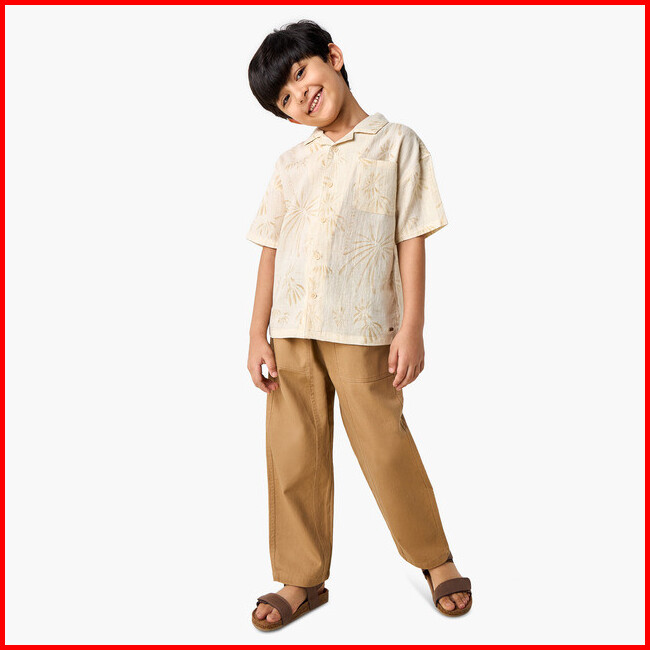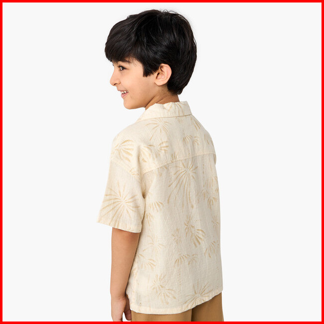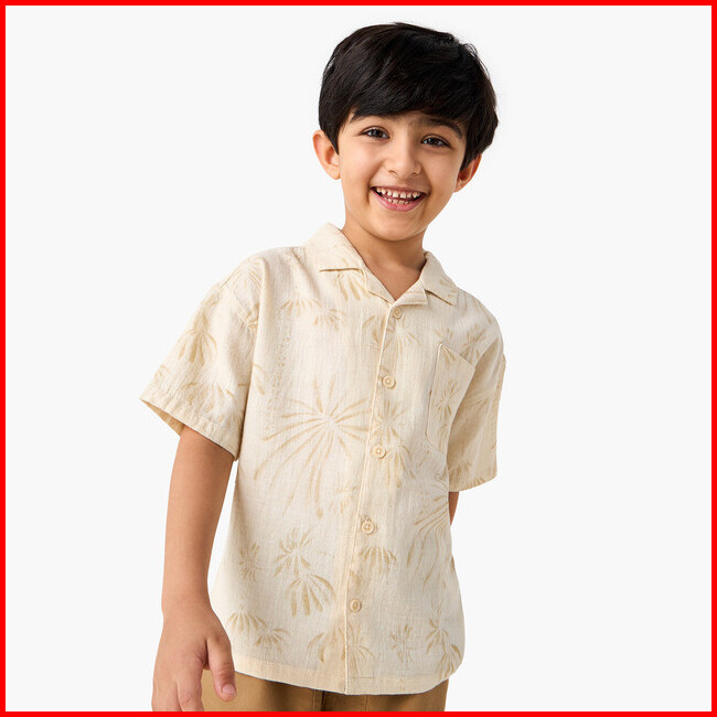 Babyshop Atasan Anak Laki-laki Eligo All-over Print Shirt With Camp Collar And Short Sleeves Cream Light