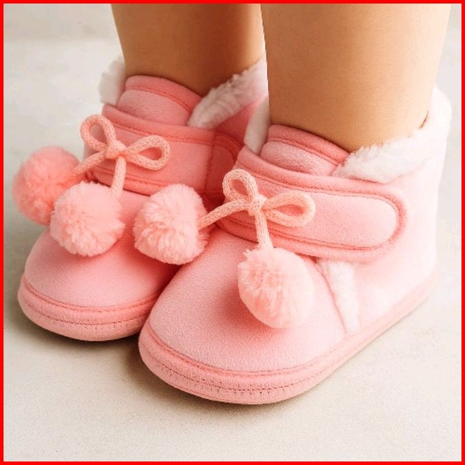 Sepatu Bayi Perempuan Prewalker 0-12 Bulan Model Pom Pom Bulu Anti Slip Baby Shoes Newborn