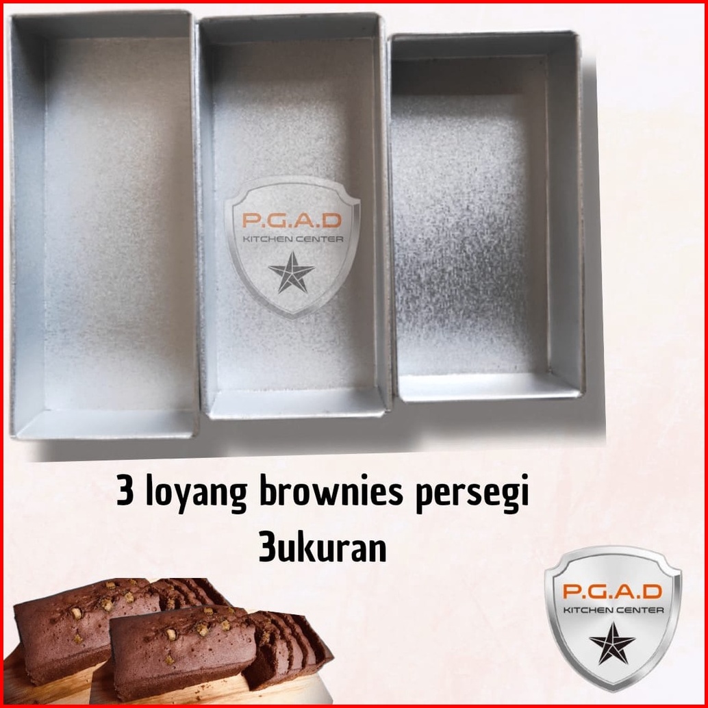 3 Pcs Loyang Cetakan Brownies Persegi 3 Ukuran