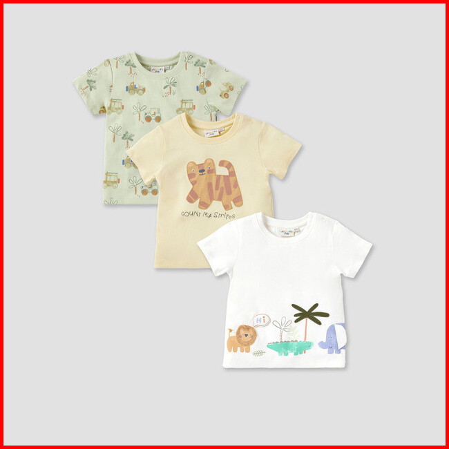 Babyshop Juniors Atasan Anak Laki-laki Animal Print T-shirt With Short Sleeves - Set Of 3 - White Multishade