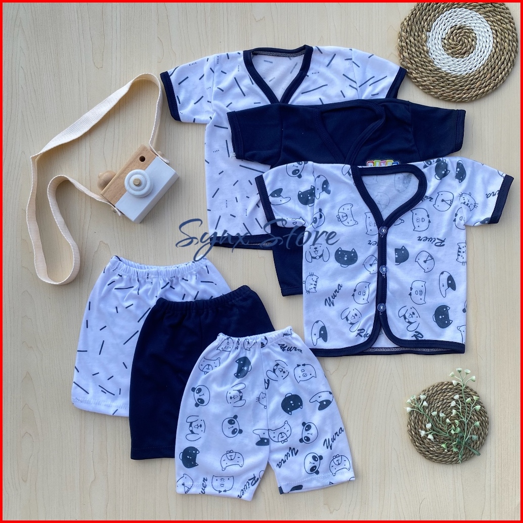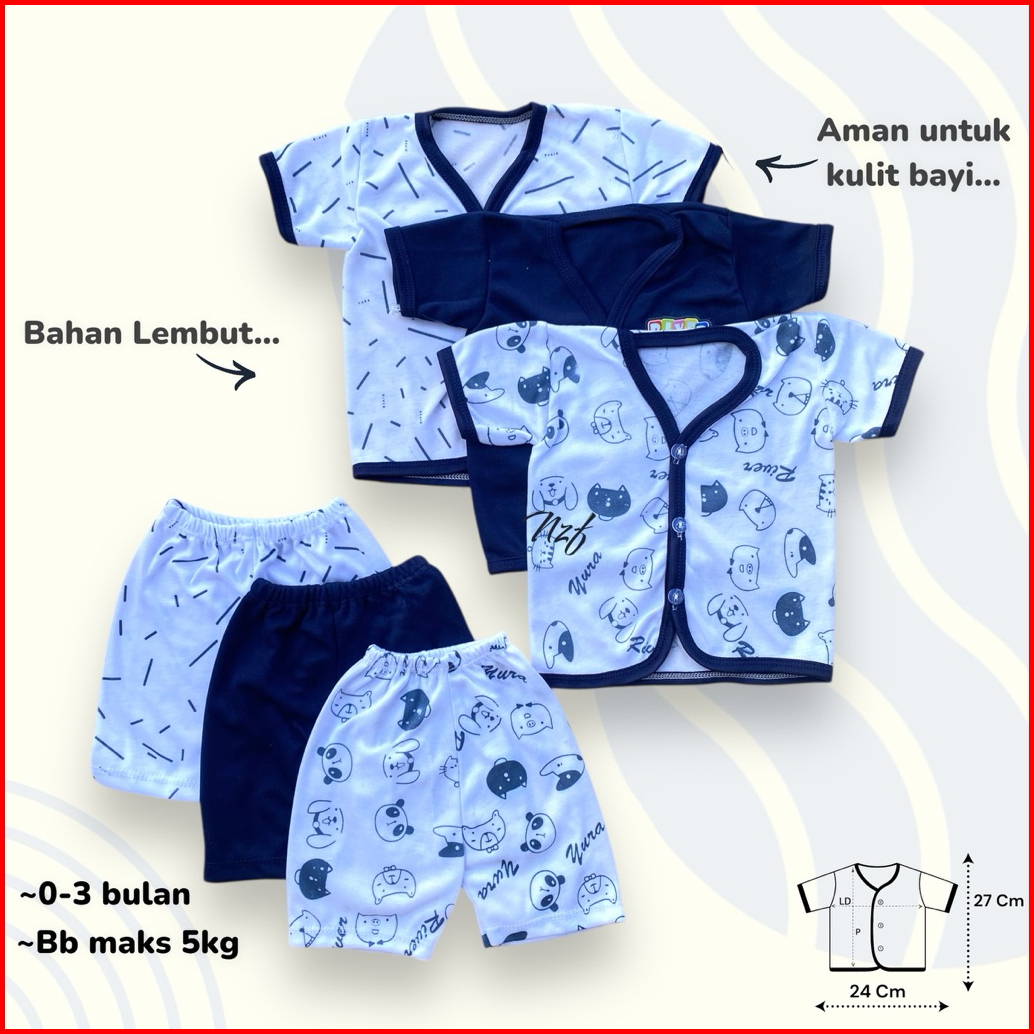 3 Set 6 Pcs Baju Bayi Lengan Pendek Seri Navy River Baju Bayi Usia 0-6 Bulan Newborn Terbaru