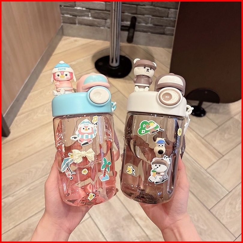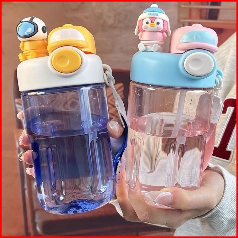 Botol Minum Anak 650ml Karakter Lucu Botol Air Plastik Dengan Sedotan