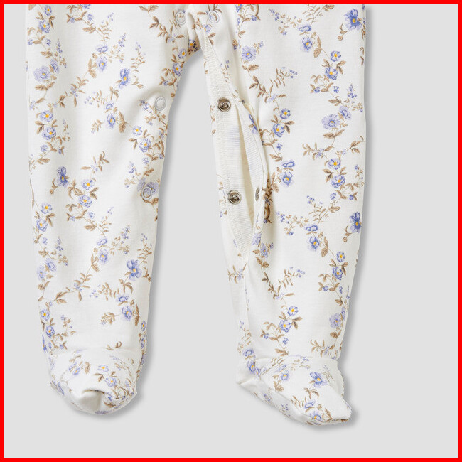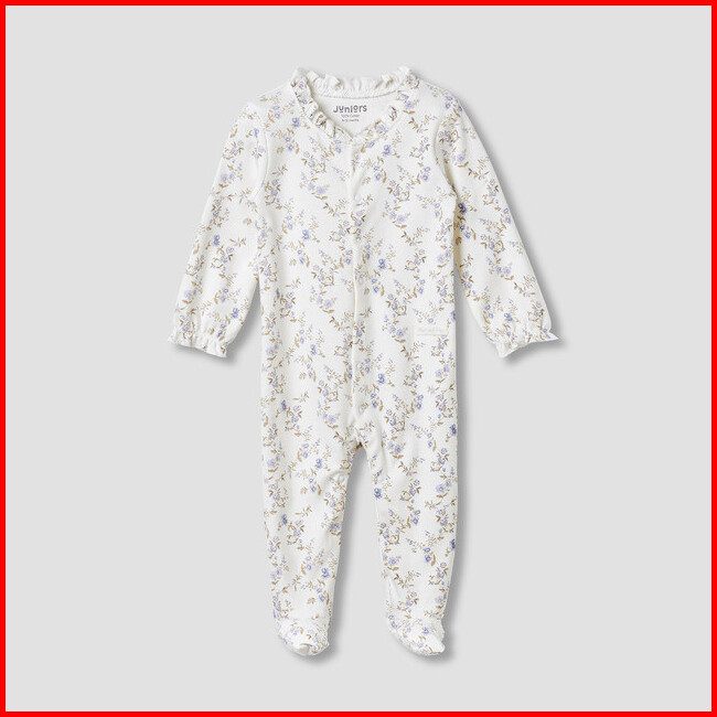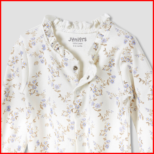 Babyshop Juniors Baju Anak Perempuan Round Neck Footed Sleepsuit With Floral Print - Cotton - Long Sleeves - Blue Medium