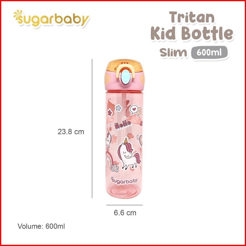 Sugarbaby Botol Minum Anak Tritan Kid Bottle Slim 600 Ml Bpa Free Dengan Sedotan Awet Aman Premium Sugar Baby