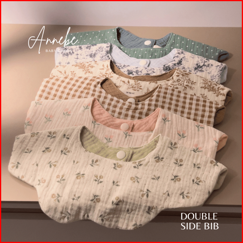 Annebe Double Side Bib Celemek Muslin Bayi 2 Sisi Katun Muslin Motif Lucu Tebal Gaya Korean Newborn