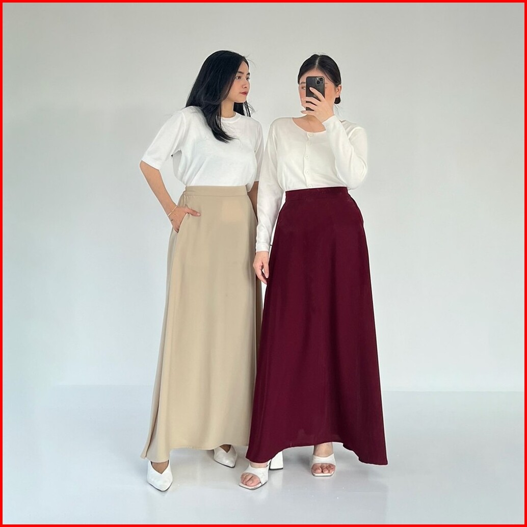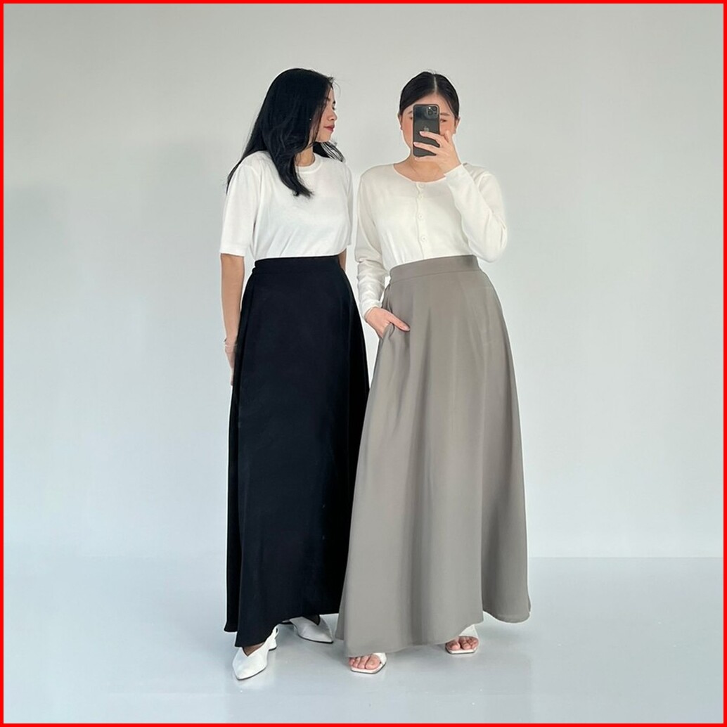 Tutuloph Jovie Long Skirt Rok Minimalist Panjang Wanita Style Formal Casual Pinggang Karet Bigsize Jumbo Normal