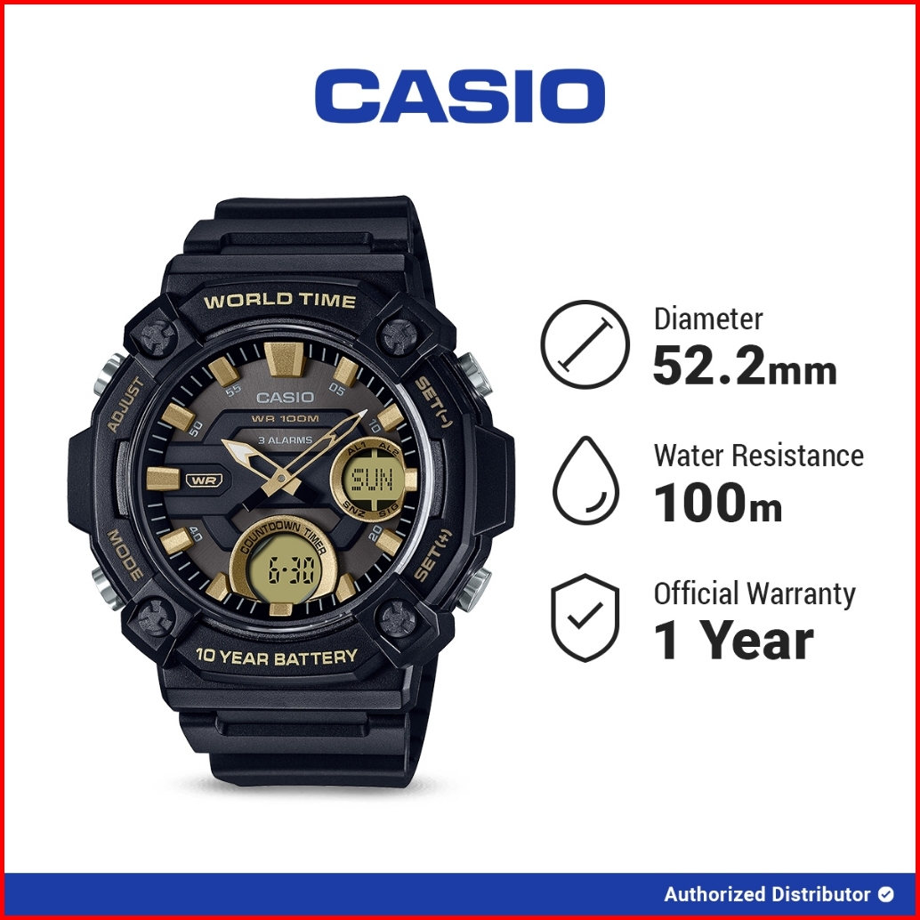 Casio Jam Tangan Pria Aeq-120w-9avdf Analog Digital Original Black