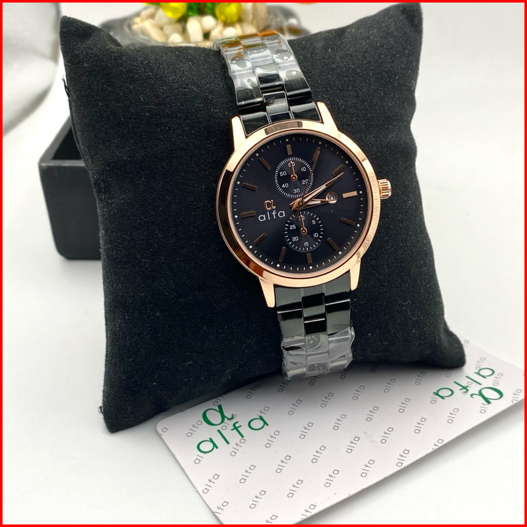 Jam Tangan Wanita Alfa Wacth Analog Quarzt Quality Japan Produk Original Alfa Tipe-80001-2 Bahan Stainless Stell Tanggal