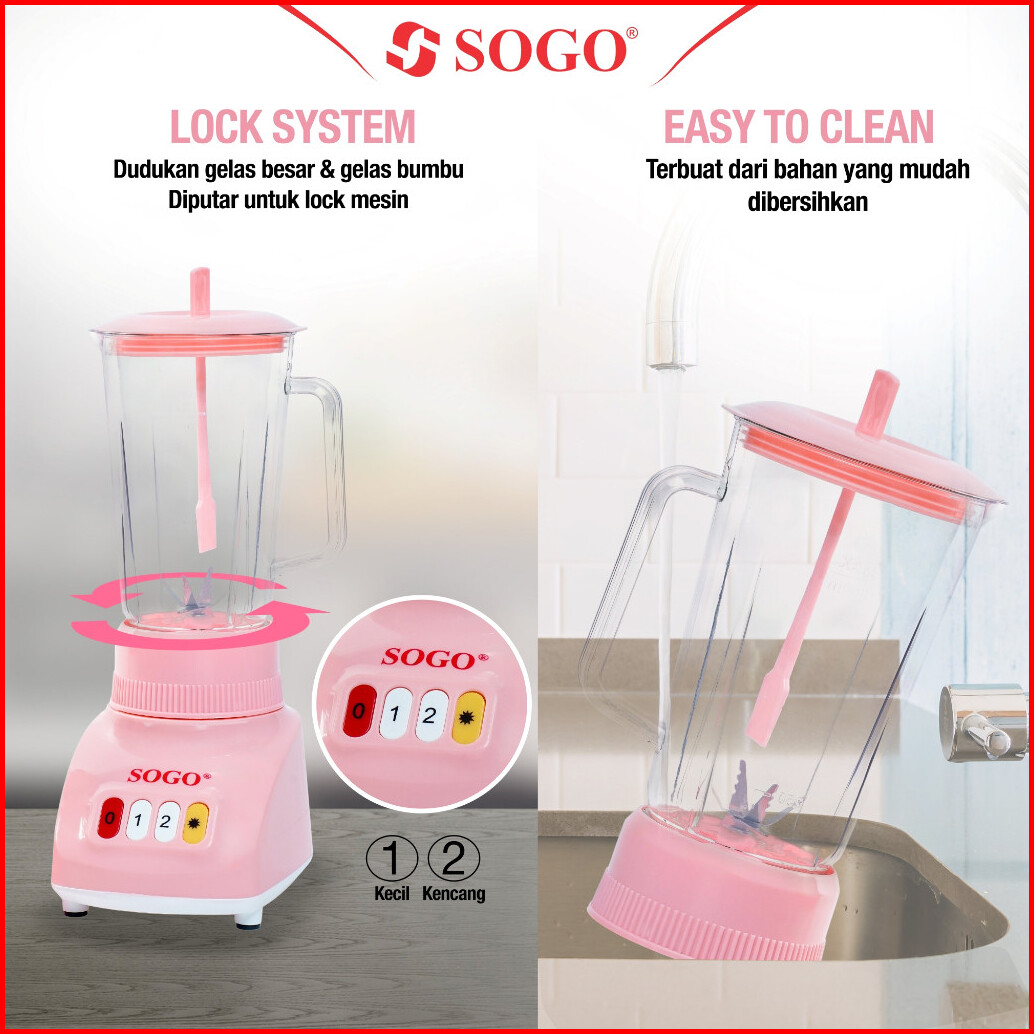 Sogo Blender 1 Liter 3in1 Plastik Anti Pecah Pisau Stainless Steel Mesin Halus Pink Sg-t9p