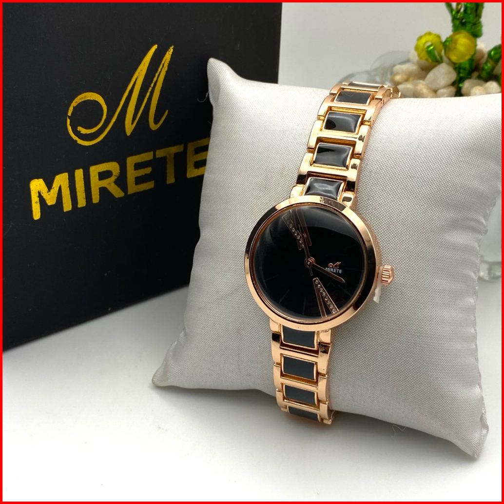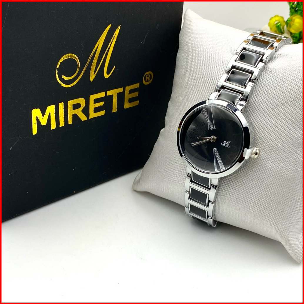 Jam Tangan Wanita Mirete R285 290 Model Rantai Keramik Mewah Bahan Stainless Analog Kaca Tebal Rantai Jam Cewek Terbaru