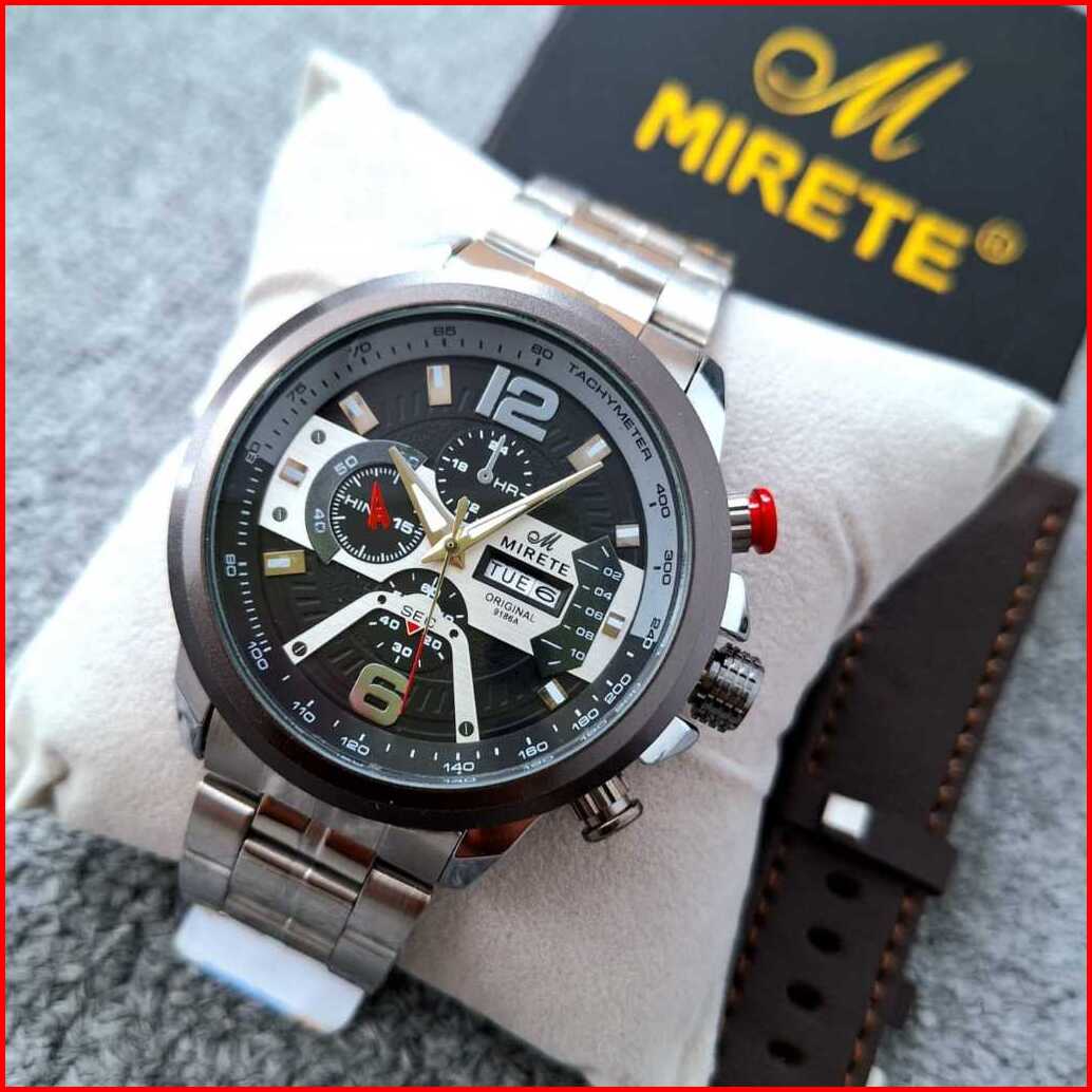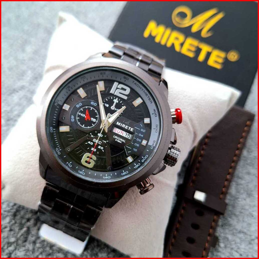 Mirete Jam Tangan Pria Original Tahan Air Tanggal Hari Aktif Tali Dua
