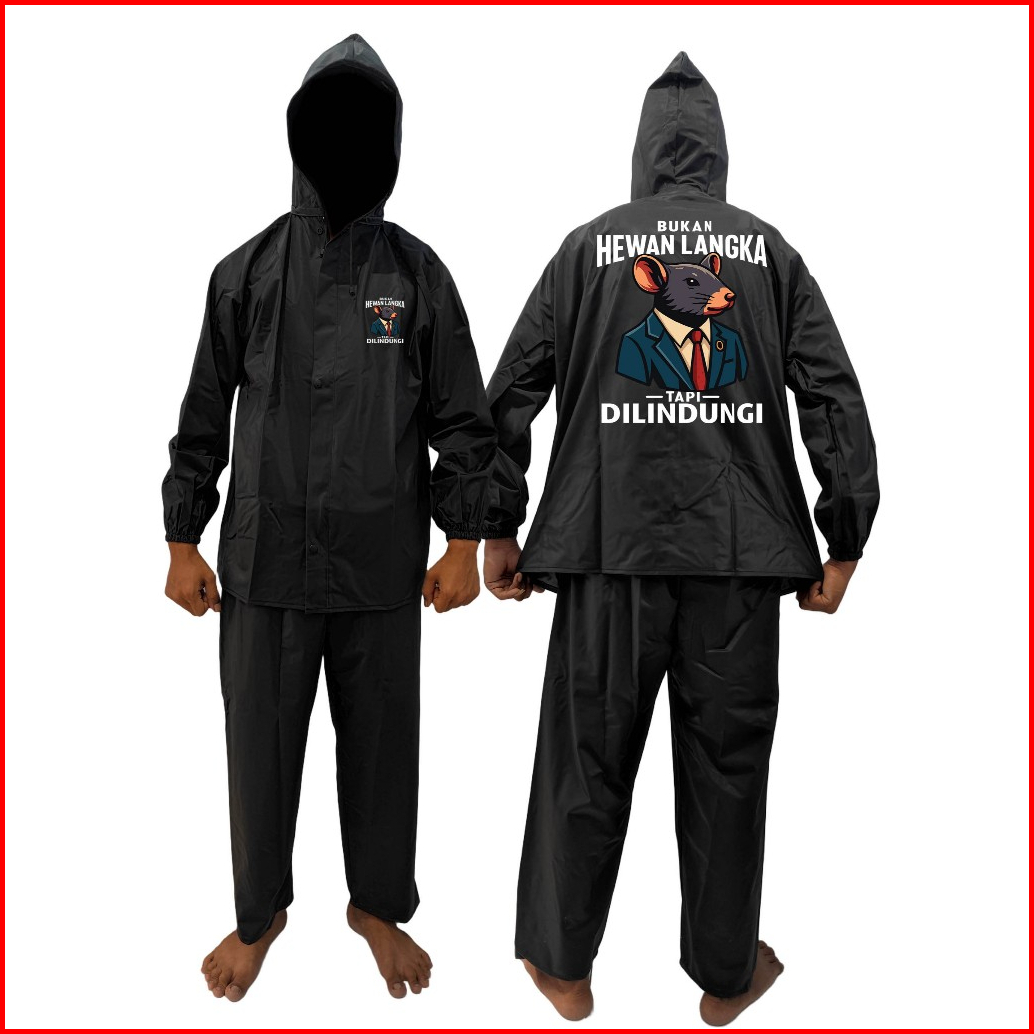 Jas Hujan Pria Wanita Motif Kata-kata Bukan Hewan Langka Bahan Pvc 0 25 Tebal Kuat Elastis