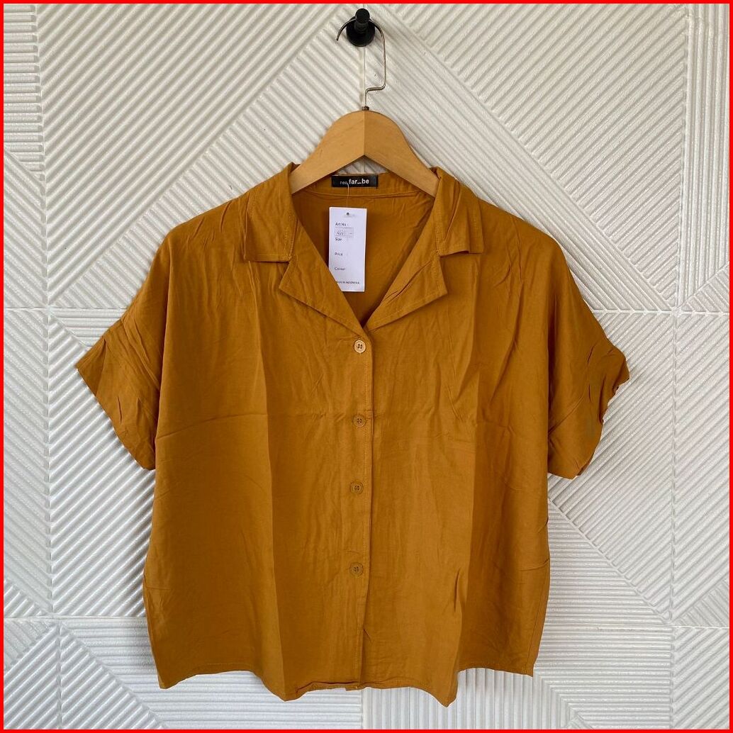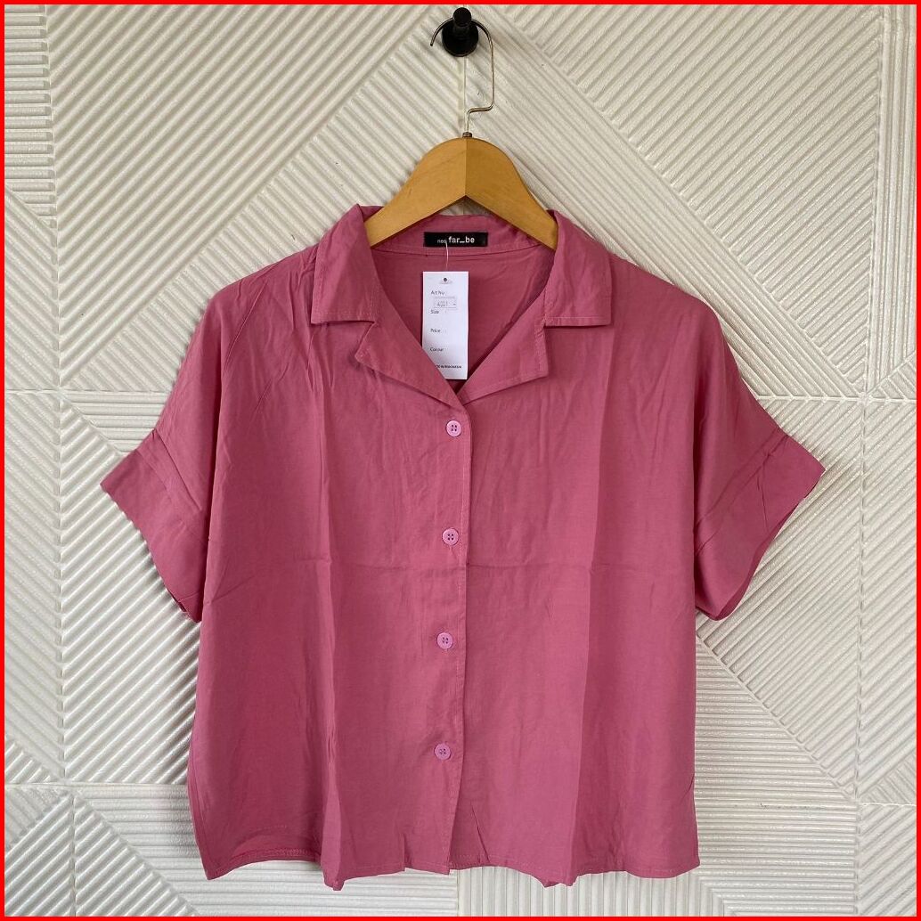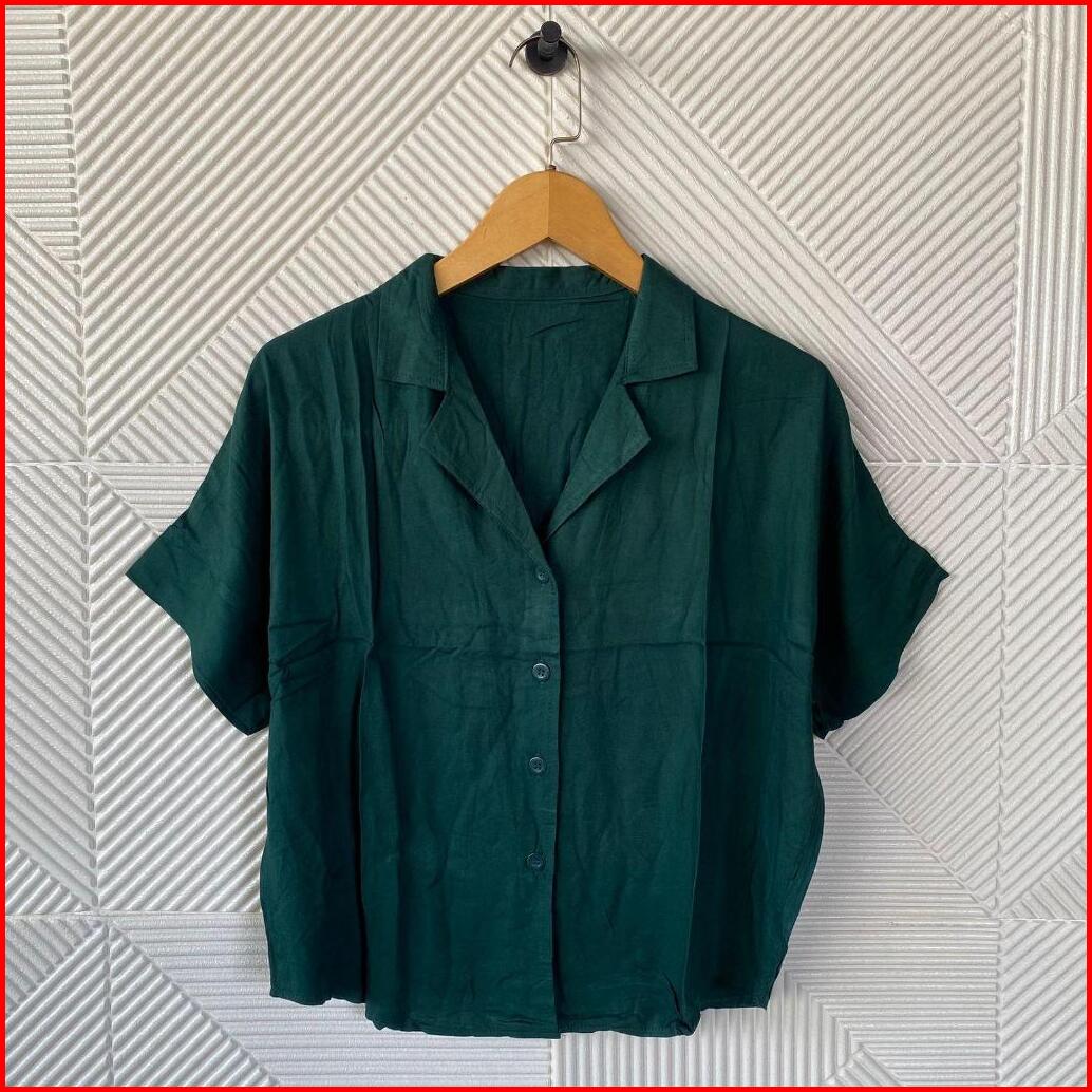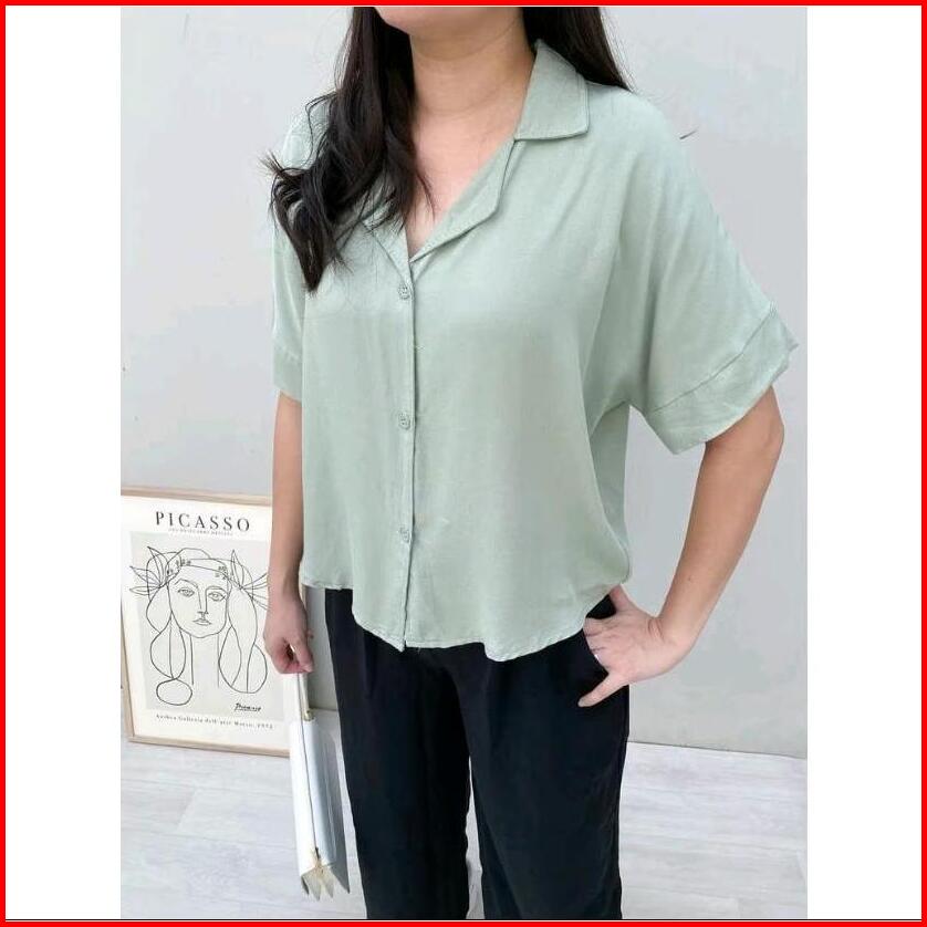 Kemeja Kancing Lengan Pendek Wanita Atasan Basic Polos Wanita Korean Style Shirt Katun Rayon Delvina