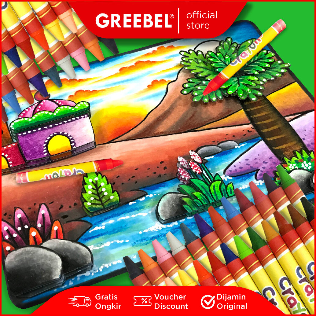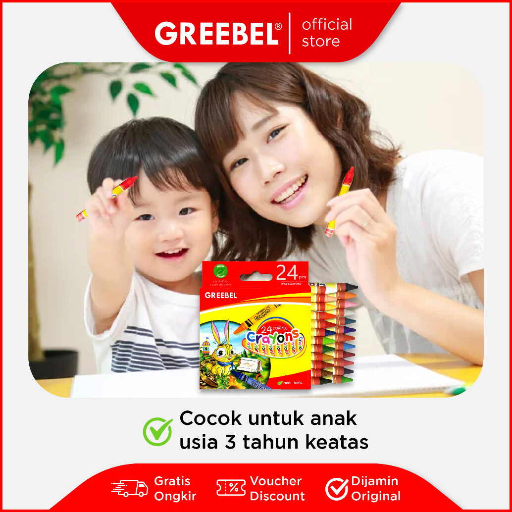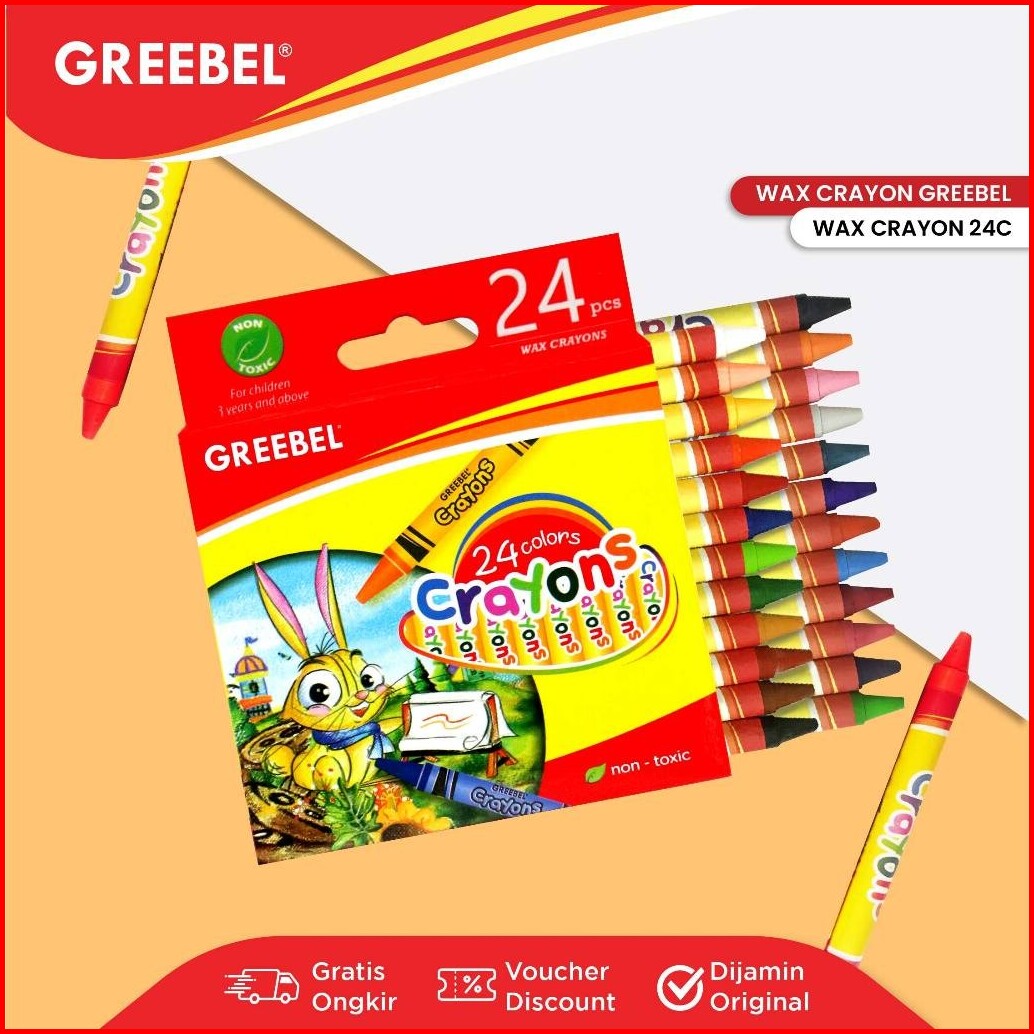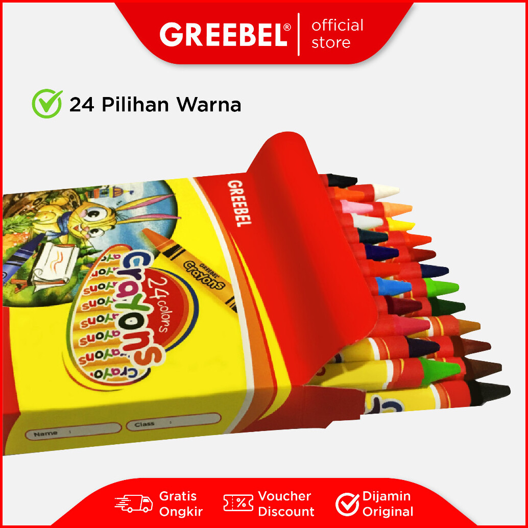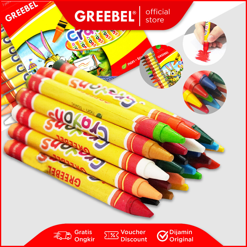 Greebel Crayon Krayon Wax 24 Warna Cerah Crayon Sekolah