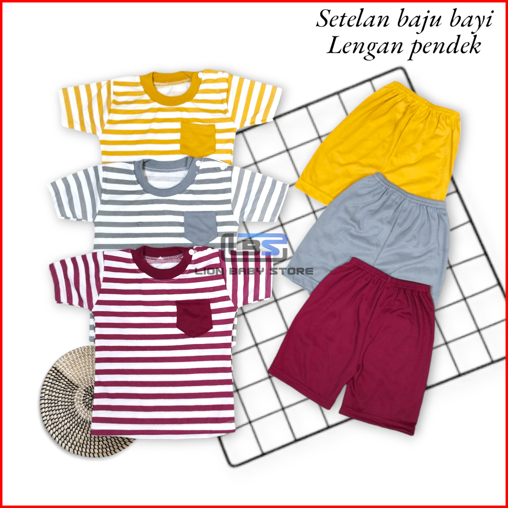 3 Setel Setelan Baju Anak Laki-laki Perempuan Lengan Pendek 3-18 Bulan Random Baju Bayi Murah
