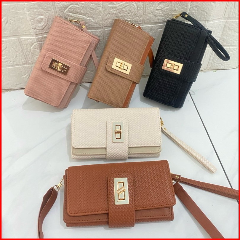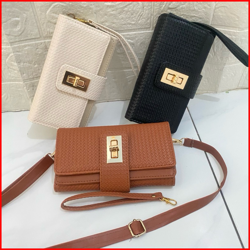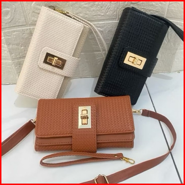 Dompet Anyam Wanita Panjang Lipat Selempang 2 Tali Dompet Savana Terbaru Muat Hp Terlaris 2025