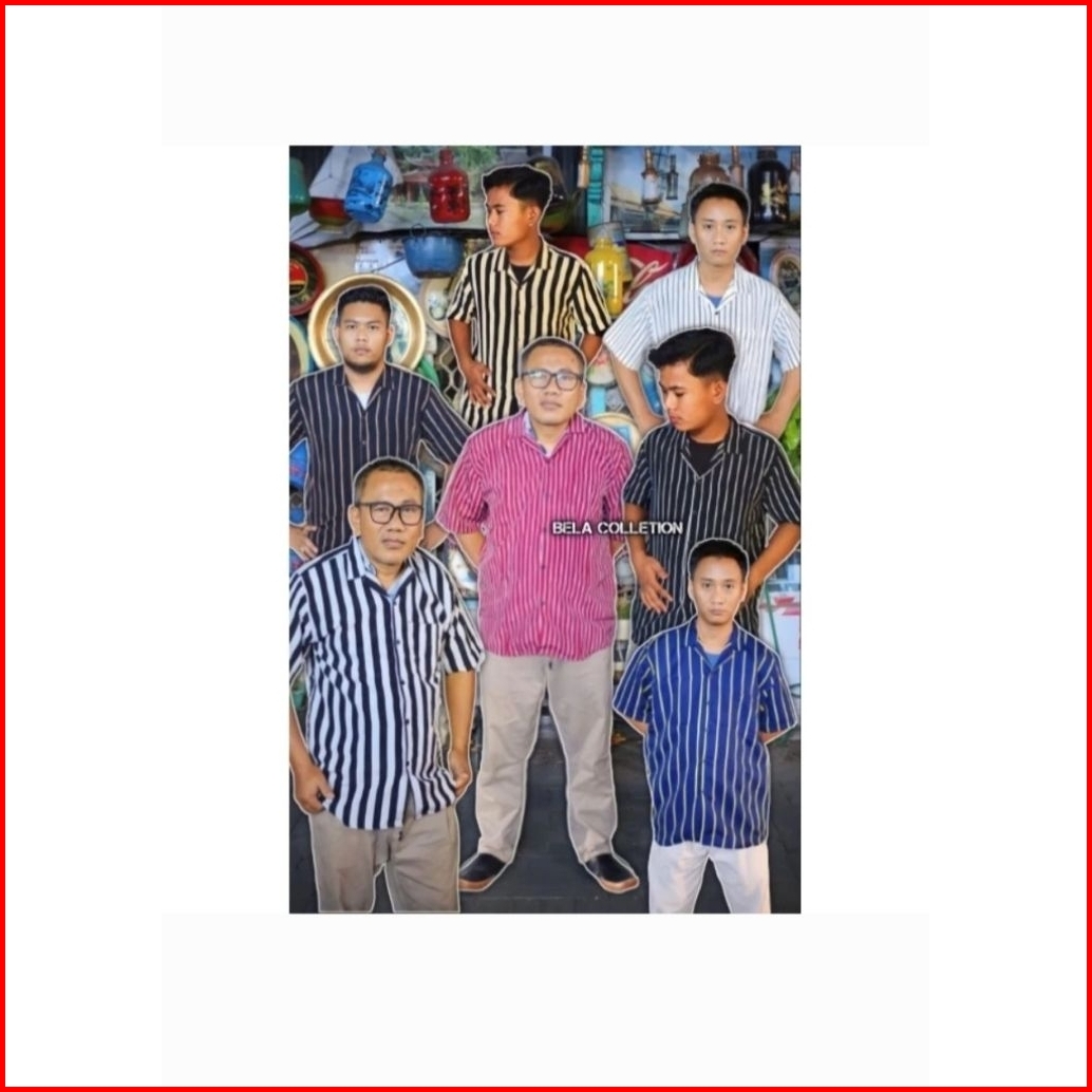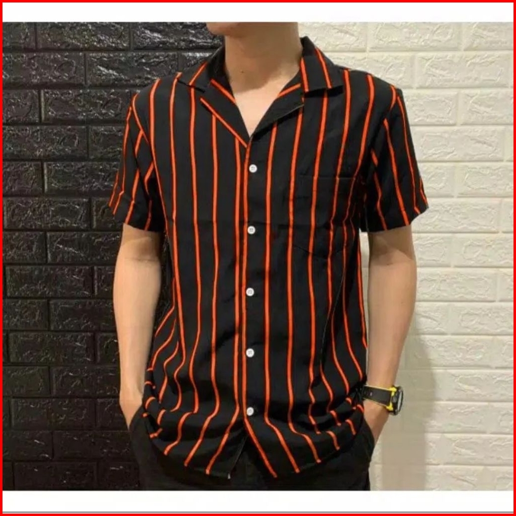 Kemeja Salur Pria Stripe Lengan Pendek V-neck