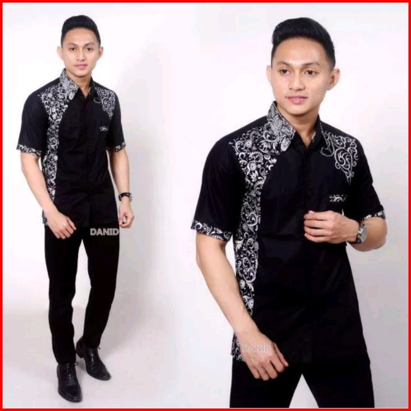 Baju Pria Lengan Pendek Kemeja Lengan Pendek Pria Motif Kekinian Kombinasi Batik Bordel Terlaris