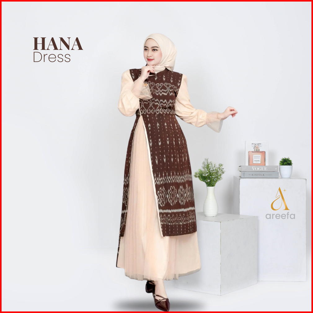 Areefa - Hana Dress Gamis Tenun Etnik Katun Tile Premium Wanita Kondangan Pesta Mewah Warna Mahogany