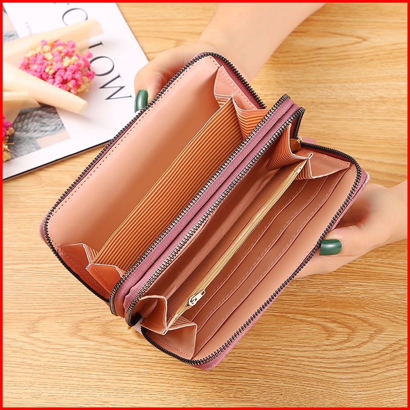 Dompet Panjang Wanita 2 Resleting Kulit Pu Fashion Women Wallet Style Clutch Import D55