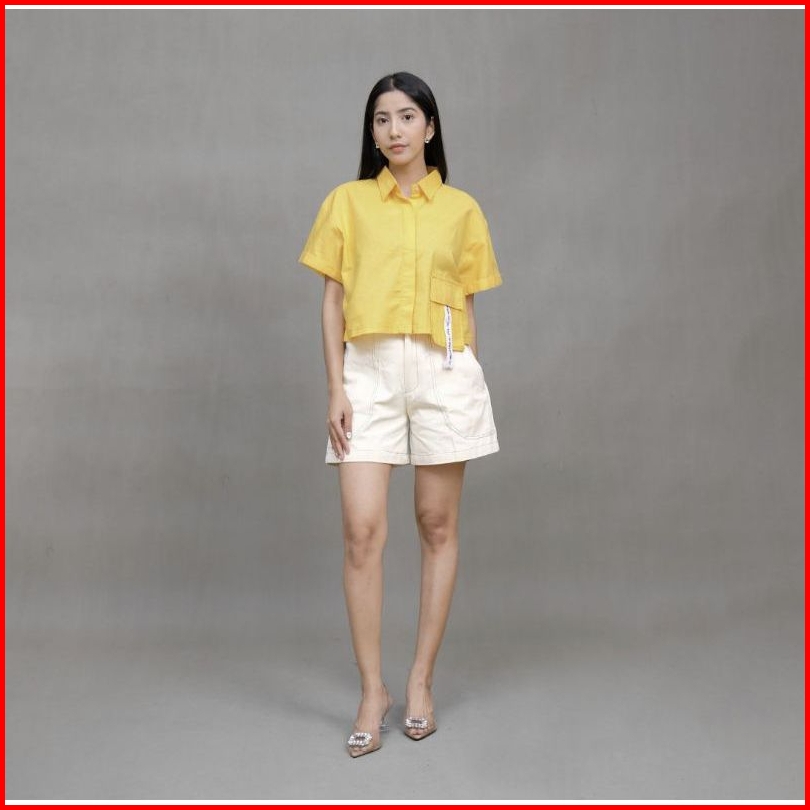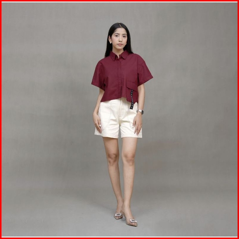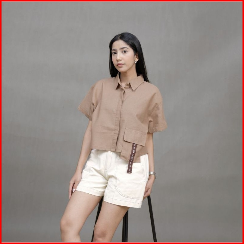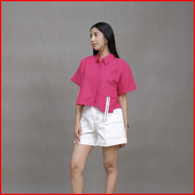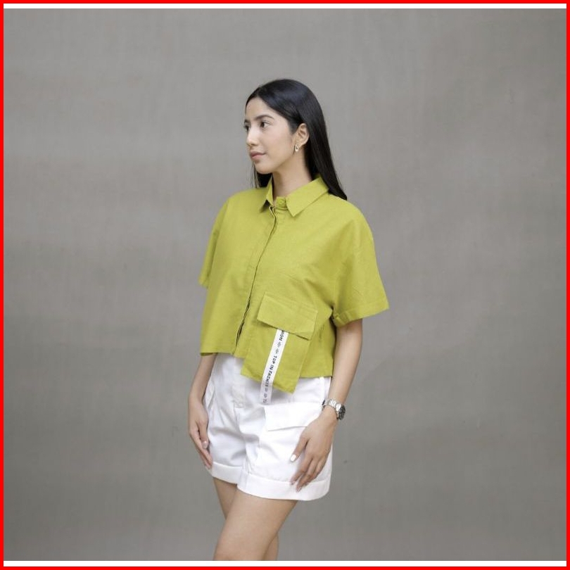 Atasan Wanita Laura Pocket Katun Linen Premium Terbaru Kemeja Polos Lengan Pendek Allsize Dan Oversize