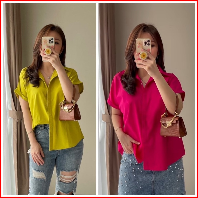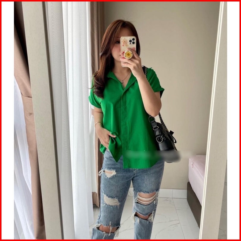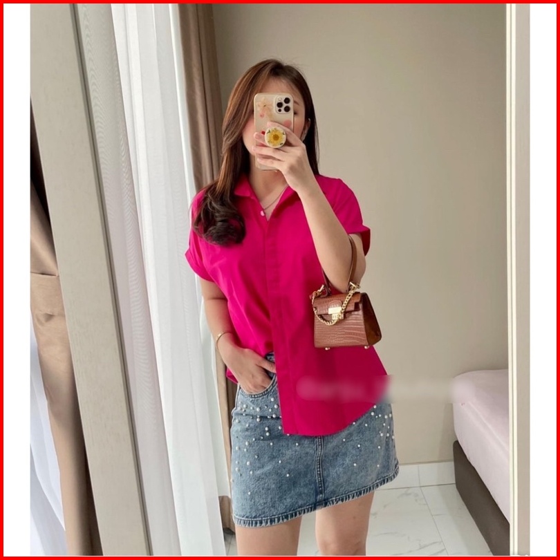 Short Sleeve Katun Poplin - Kemeja Atasan Wanita Lengan Pendek Super Premium 8007