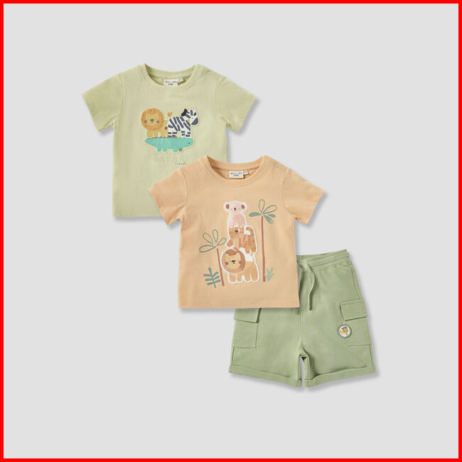 Babyshop Juniors Baju Anak Laki-laki 3-piece Applique Detail T-shirt And Shorts Set - Green Multishade