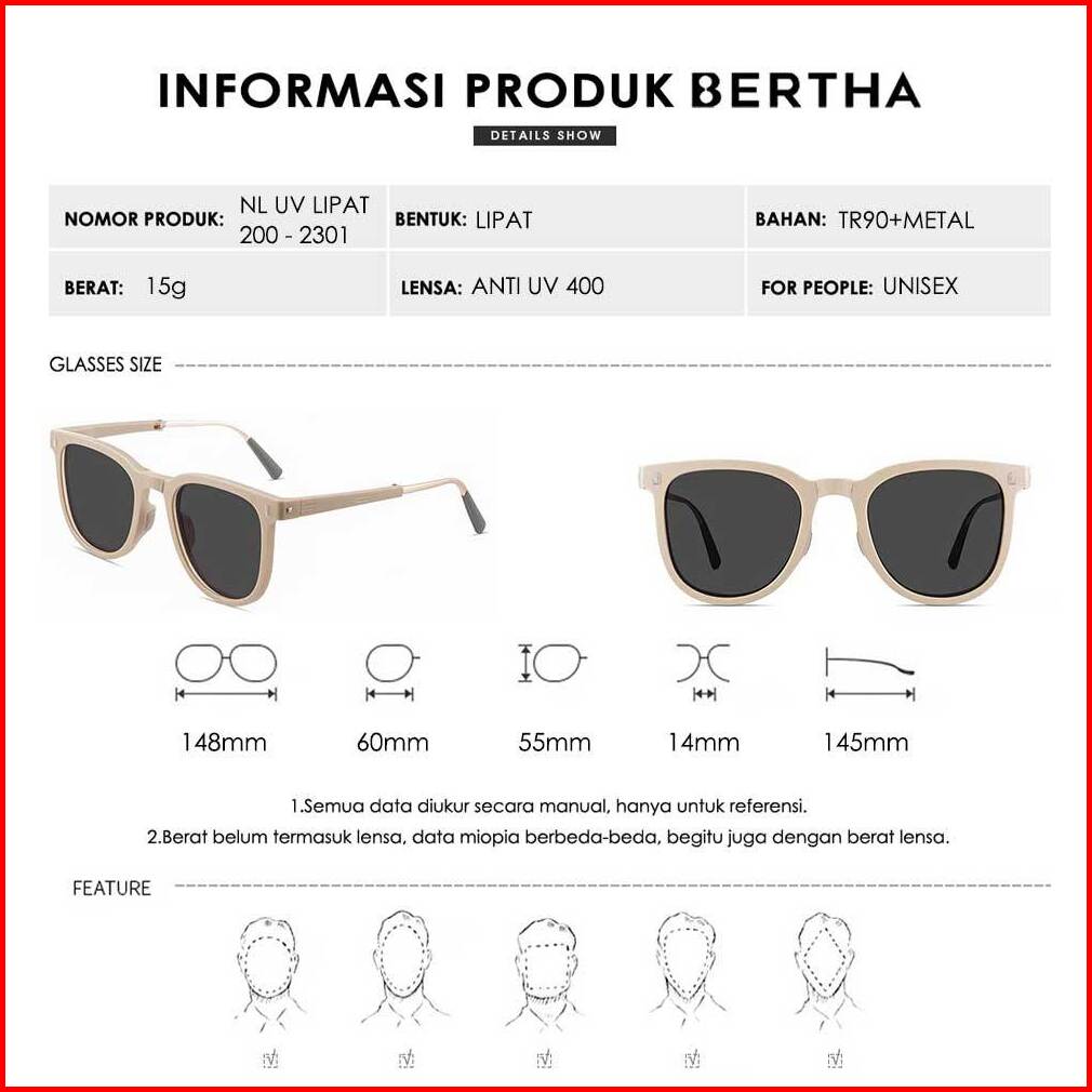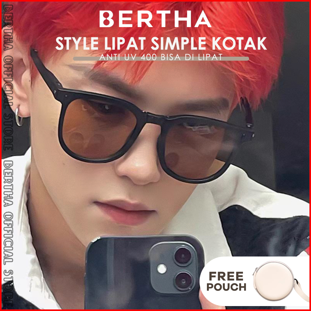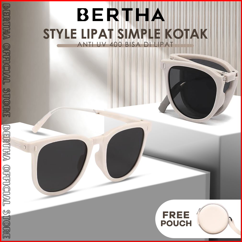 Bertha Kacamata Sunglases Uv 400 Foldable Anti Silau Fashion Wanita Dan Wanita Bisa Lipat Keren Elegant Kotak Tr90 Metal