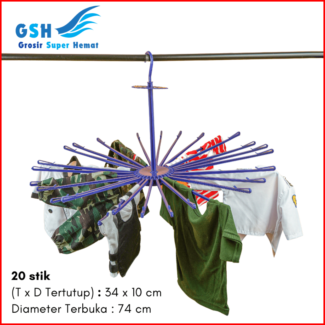 Gsh - Folding Hanger 20 Stik 30 Stik High Way Jemuran Gantungan Baju Bulat 30 Tangkai Bayi Kaos Kaki Plastik