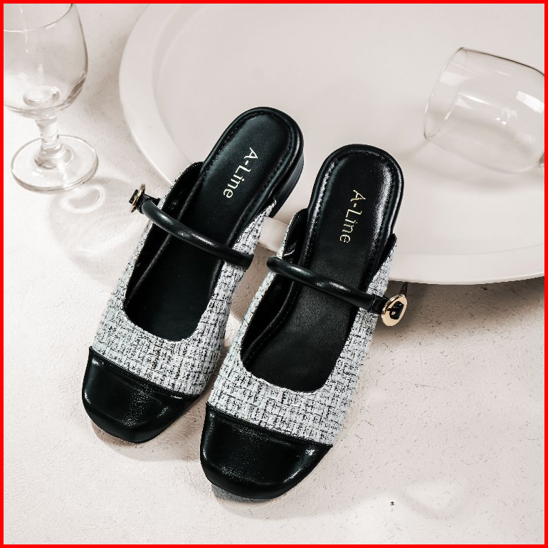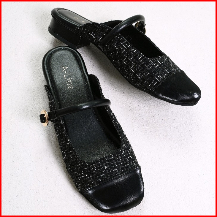 Aline Evalia Mules Mary Janes Hak 2cm Wanita Kekinian Korean Style