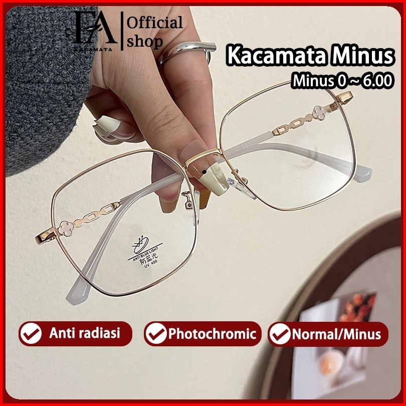 Fomamata Kacamata Minus Photocromic Wanita Anti Radiasi Blueray 2 In 1 Frame Fashion Astigmatism Bluechromic Uv400 Metal
