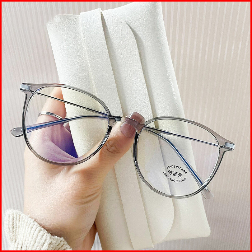 Fomamata Kacamata Minus Photocromic Wanita Pria Anti Radiasi Blueray Fashion Round Bluecromic Frame
