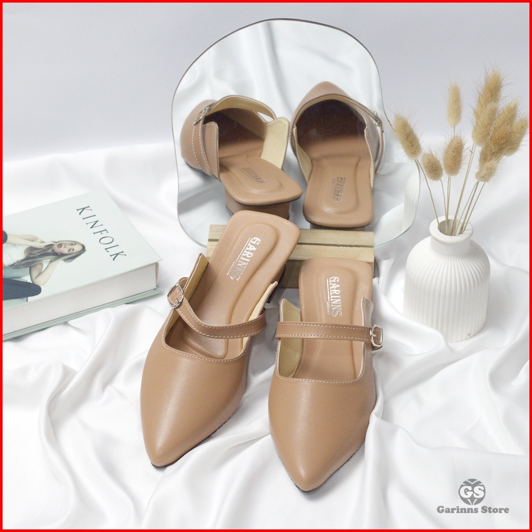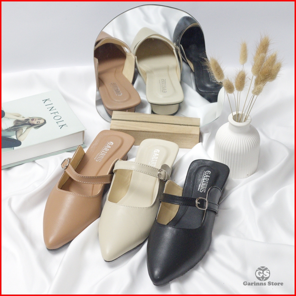 Sandal Sepatu Mules Tali Wanita Trend Kekinian Hak 3cm Garinns