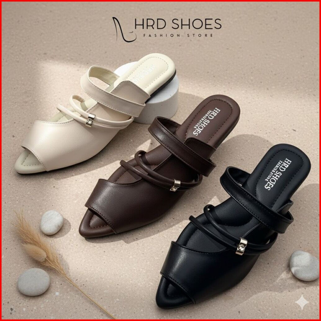 Sandal Flat Wanita Tali Brown Flatshoes Wanita Tali Tengah Permata Hrd Shoes