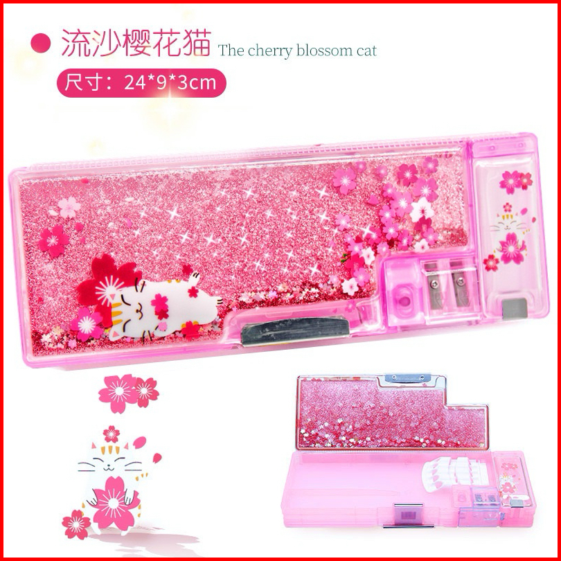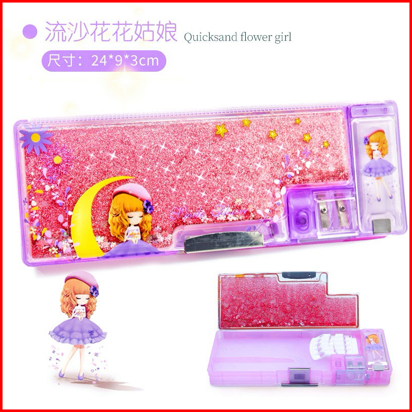 Kotak Pensil Magnet Glitter Air Tempat Pensil Karakter 2 Sisi