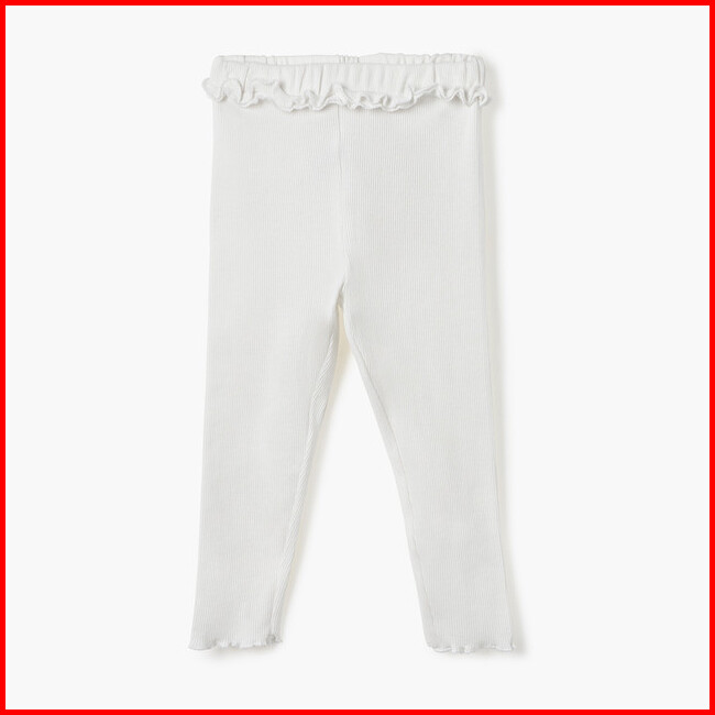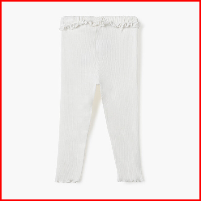 Babyshop Juniors Celana Anak Perempuan Ribbed Leggings With Lettuce Hem And Ruffled Waistband - White