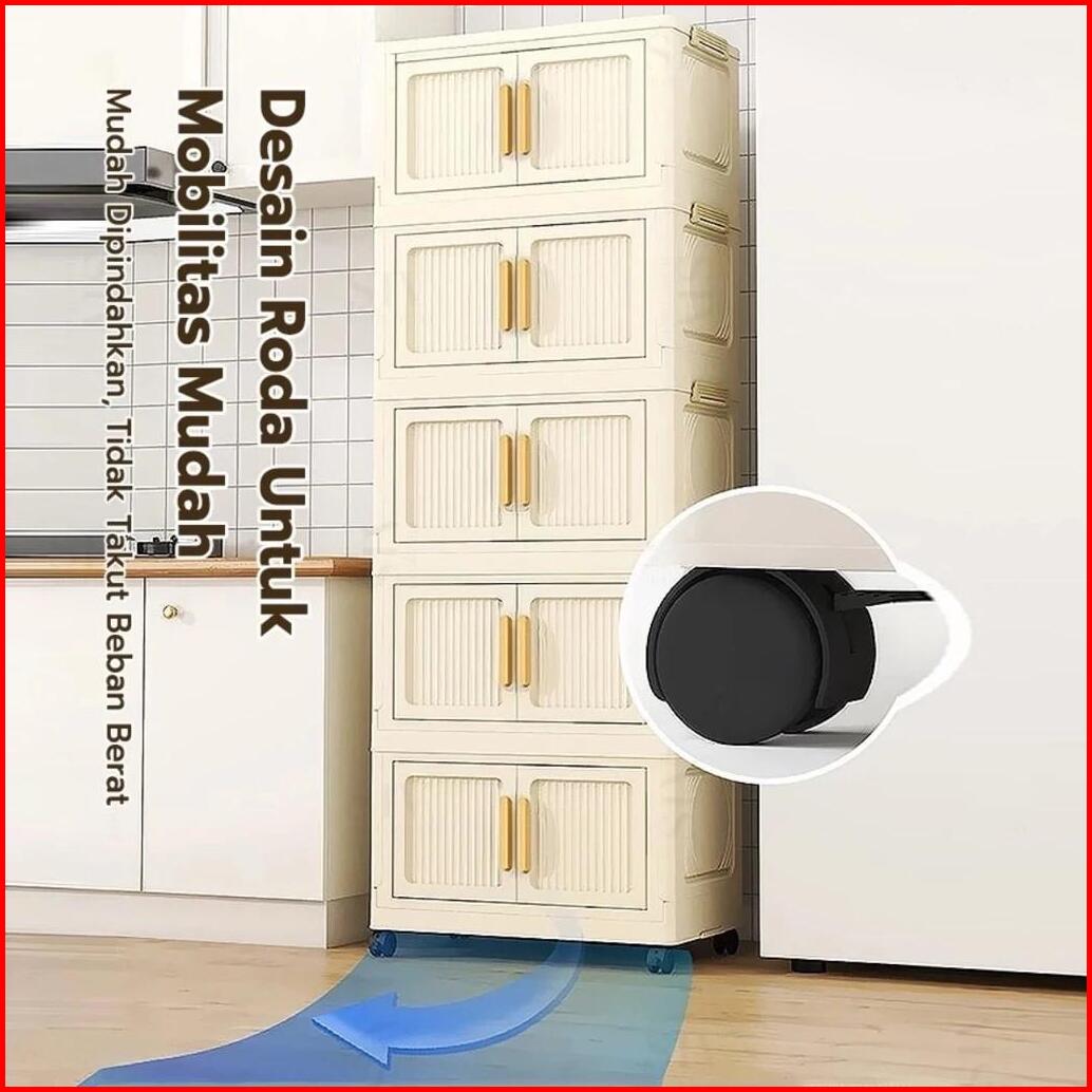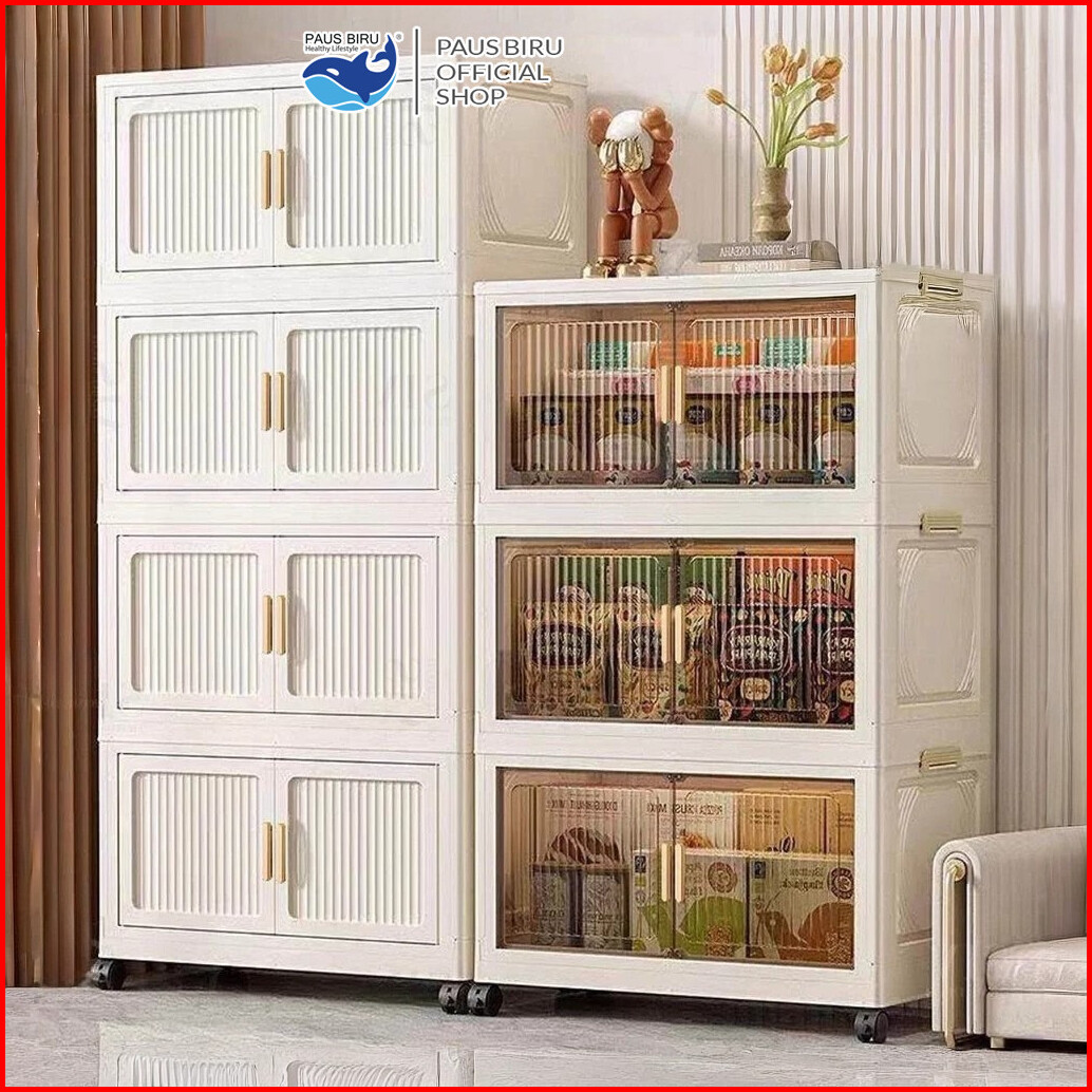 Paus Biru - Lemari Plastik Lipat Susun 60cm Kabinet Pakaian Serbaguna Anti Debu Minimalis Lemari