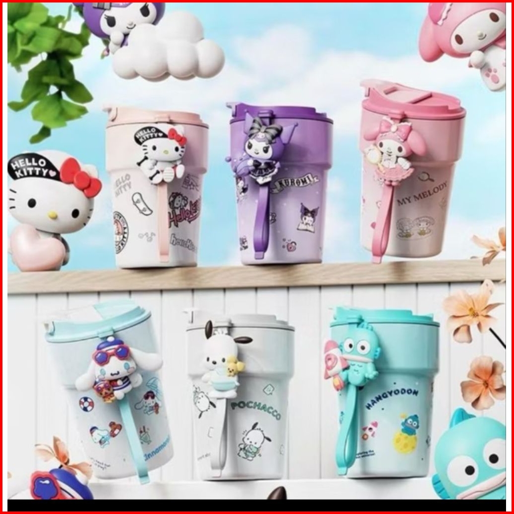 Tumbler Stainless Stell 304 Mug 450ml Stainless Dewasa Dan Anak-anak Dangan Gantungan Tapi Motif Karakter Sanrio Kuromi