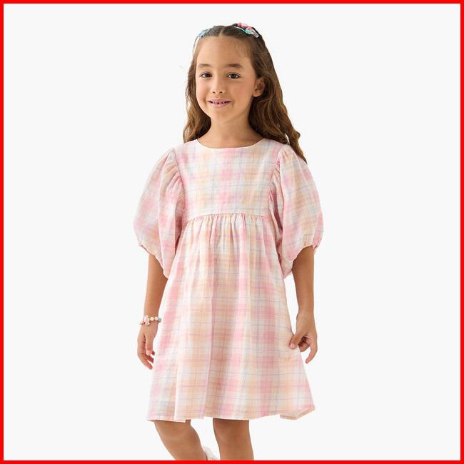 Babyshop Juniors Baju Anak Perempuan Checked A-line Dress With Round Neck