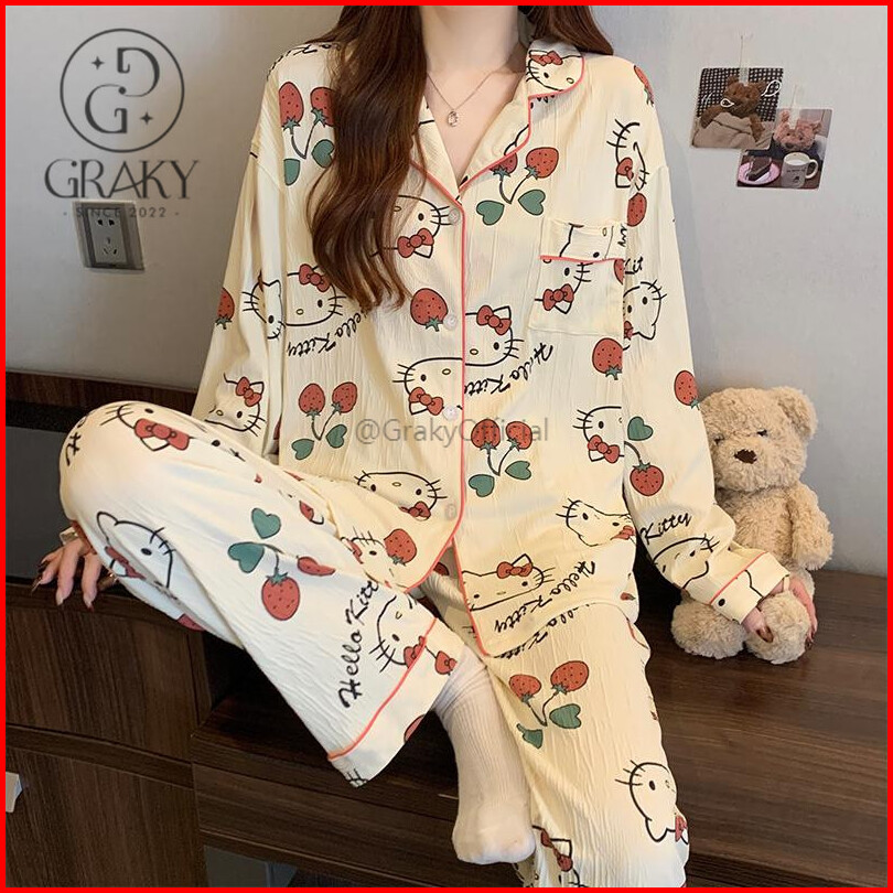 Graky Sleepwear Piyama Tidur Set Lengan Panjang Piyama Hijabers Baju Tidur Couple Et3