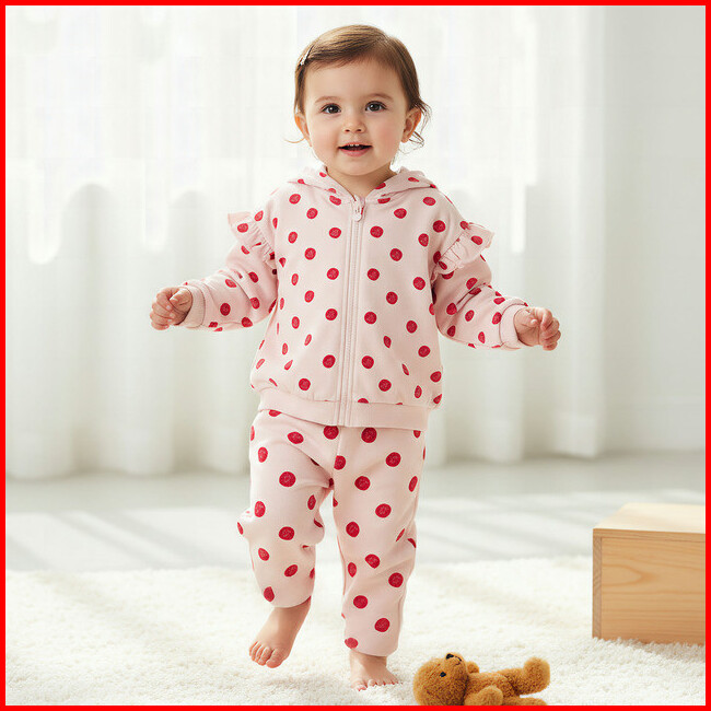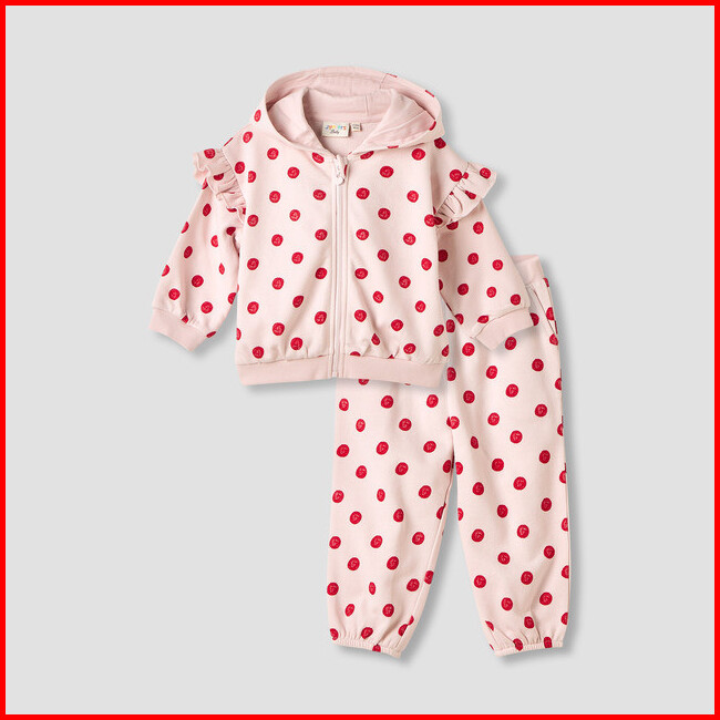 Babyshop Juniors Baju Anak Perempuan Polka Dot Print Zip Through Hoodie And Joggers Set - Pink Light