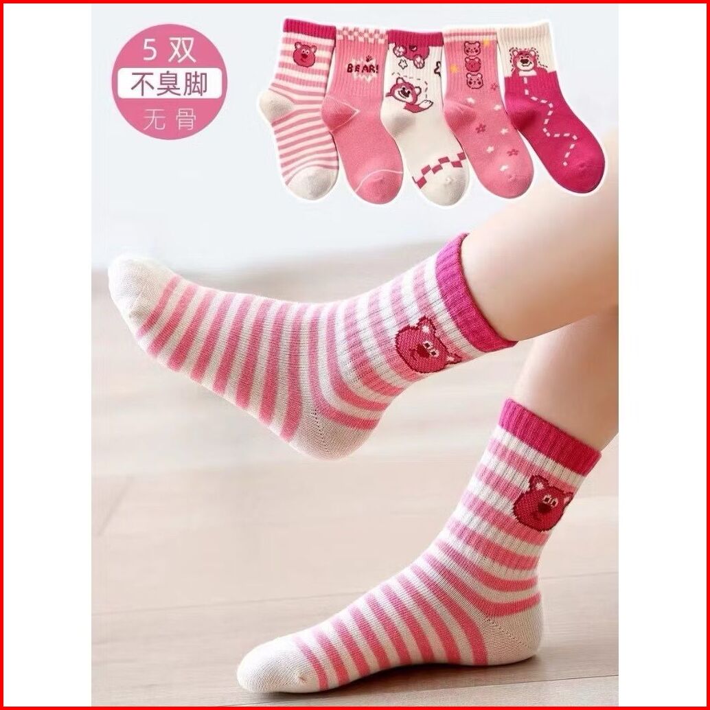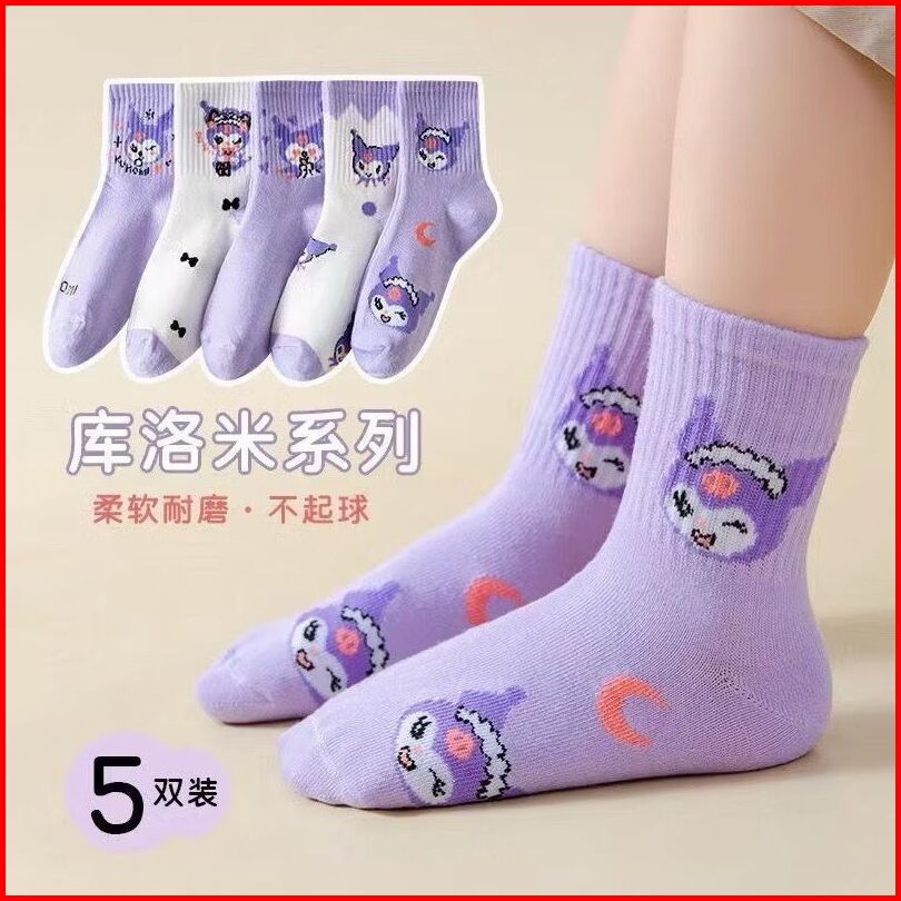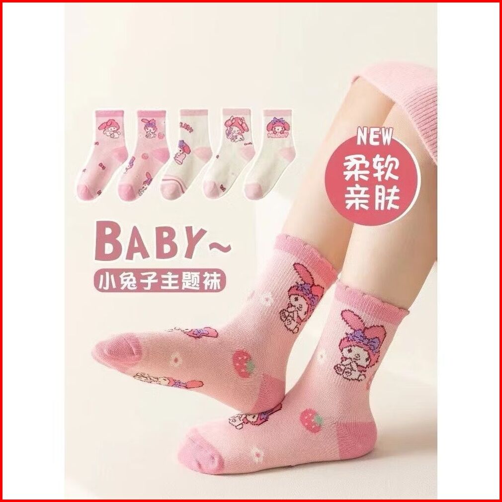 Set 5 Pasang Kaos Kaki Anak Perempuan Sebetis Calf Socks Motif Lots Kur Melody