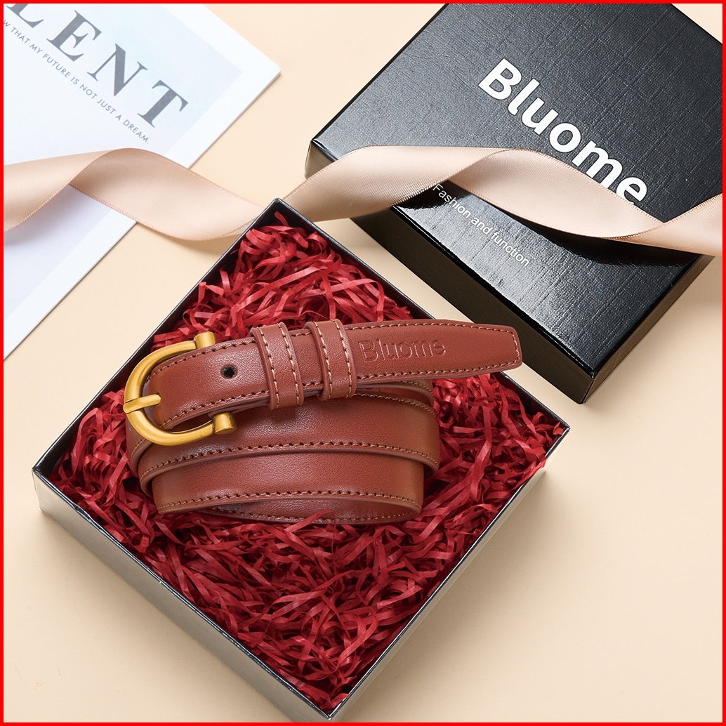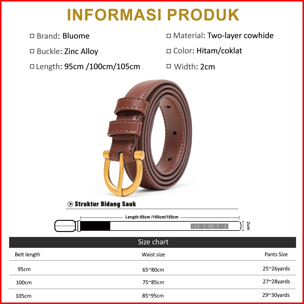 Bluome Ikat Pinggang Wanita Fashion Sabuk Kulit Sapi Gesper Belt Vintage Klasik Hitam Coklat