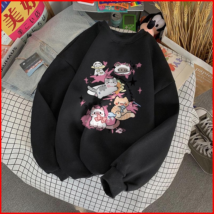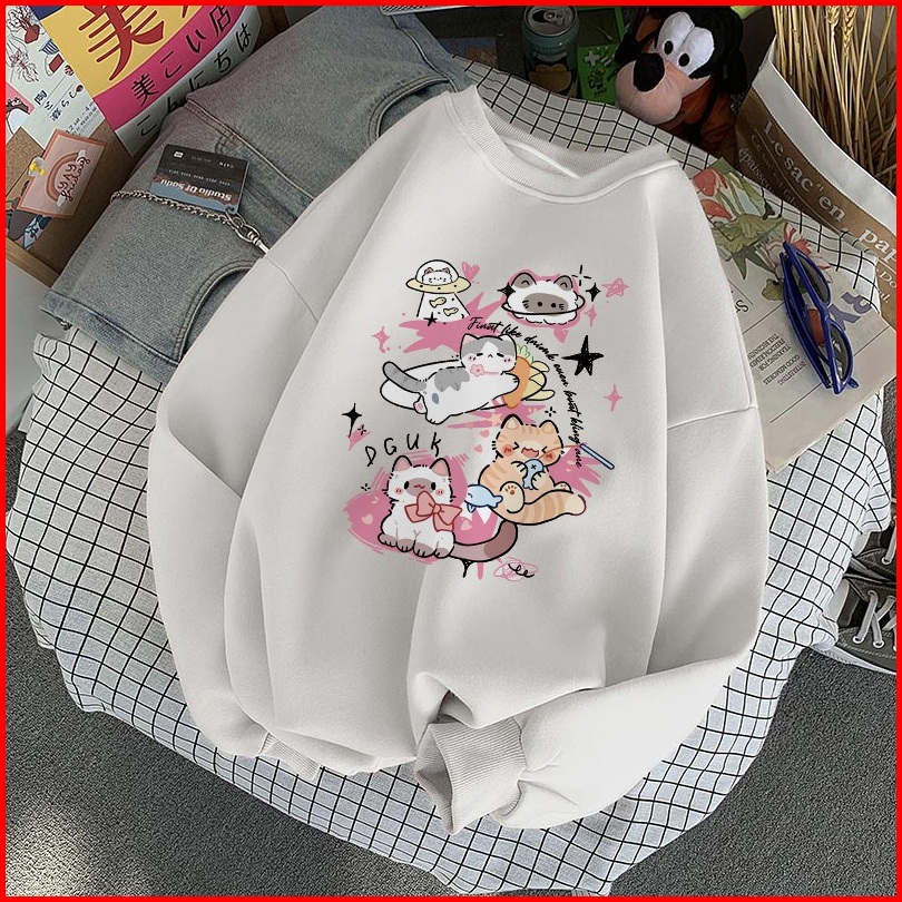 Forteid Sweater Lengan Panjang Oversized Street Style Korean Style Switer Wanita Oversize Cetakan Planet Kucing Oversize