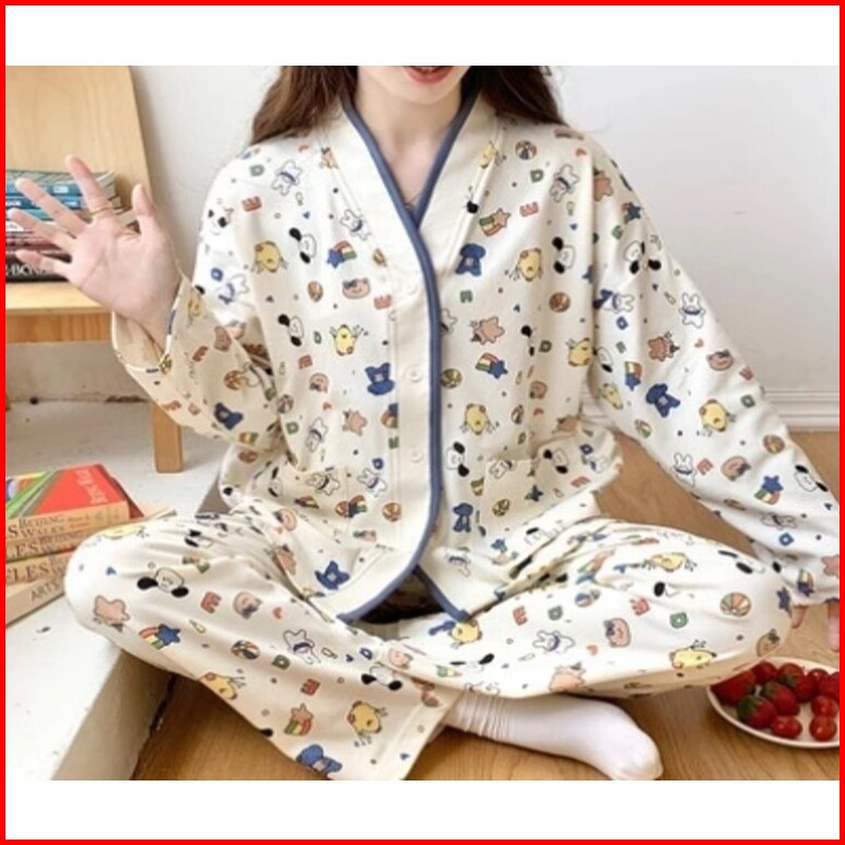 Bsg Bt003 Baju Tidur Korea Pijamas Pijama Panjang Set Fashion Wanita Piyama Kancing Pakaian Kemeja