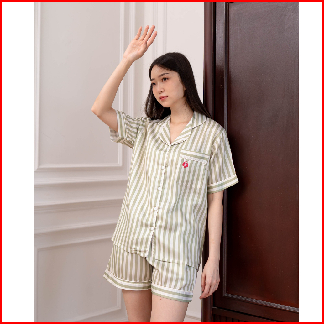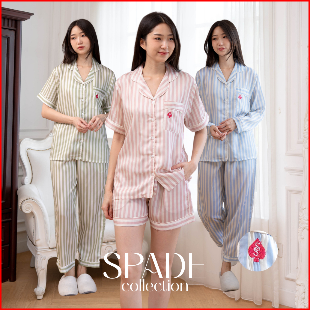 Surrell Sleepwear Spade Collection S-xl Organic Silk Tencel Pajamas Stripes Set Piyama Wanita Lengan Panjang Long Sleeve